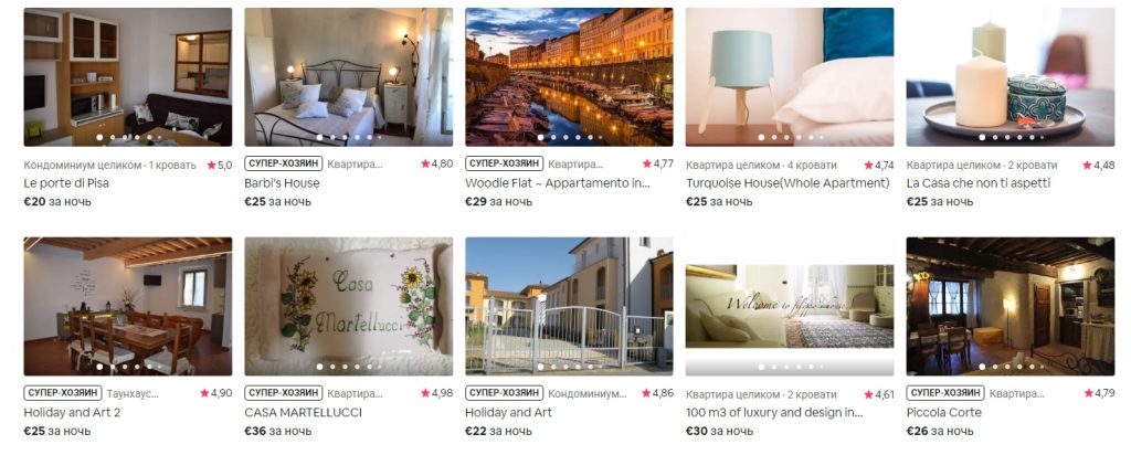 Приклади бронювання житла в Пізі на період 16.05.2020 — 23.05.2020,7 ночей: