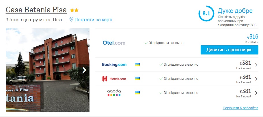 - Hotelscombined.сom — порівняння цін на готелі, знижки до 50%