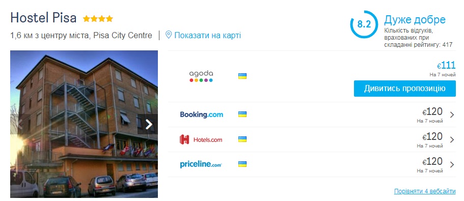 Для бюджетного проживання – Hostel Pisa – від €111 за місце у хостелі.