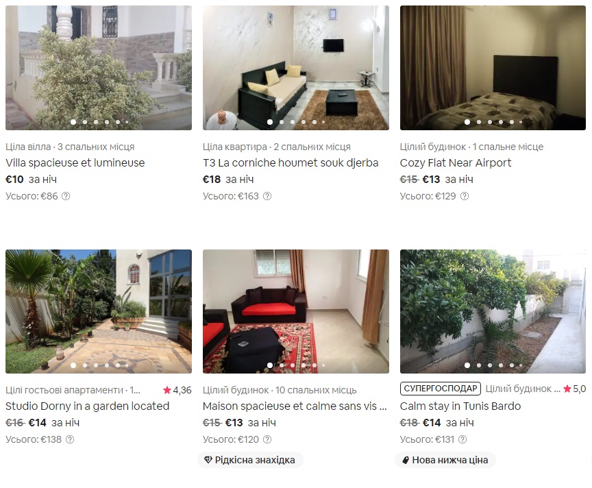 Приклади бронювання житла у Тунісі на період 02.06.2020 — 10.06.2020, 8 ночей: