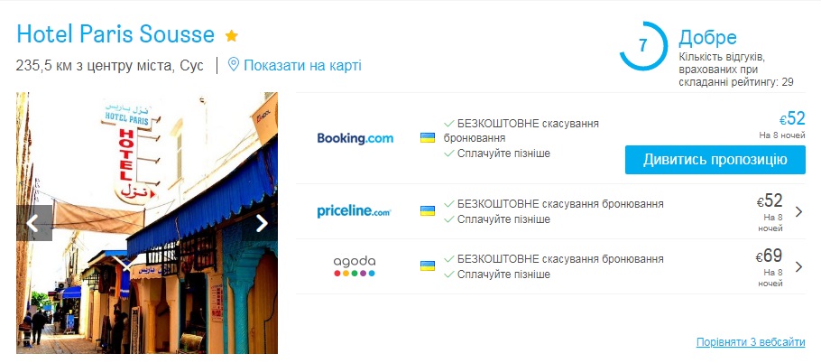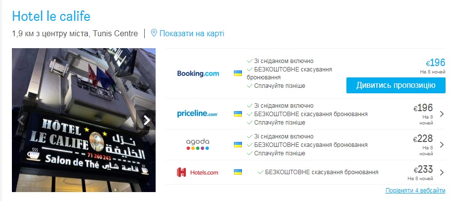 Щоб не переплачувати комісій радимо порівнювати ціни на Hotelscombined.сom.