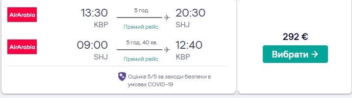 Київ-Шарджа-Київ (20.11.2020 – 27.11.2020) – €292