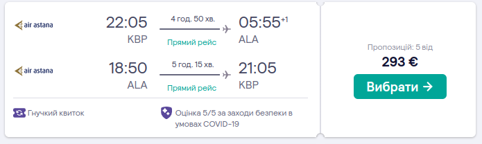 Київ – Алмати – Київ (09.10.2021 – 23.10.2021) – €293