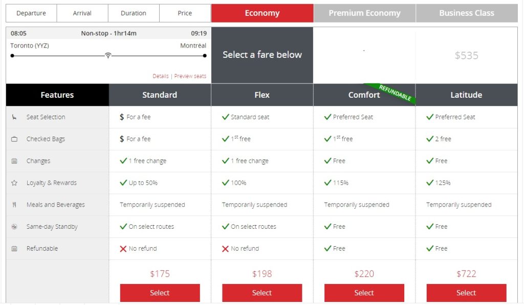 Канадська авіакомпанія Air Canada розпочала продавати квитки на регулярні внутрішні рейси тільки на літаках з бізнес-класом.
