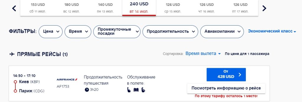 Авіакомпанія Air France відновить прямі перельоти з Києва у Париж з 14 липня 2020.