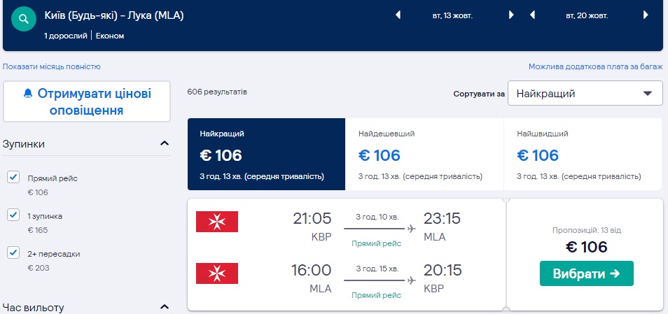 Замовляти квитки потрібно на сайті Air Malta або скористатись сервісами Skyscanner.com чи Kiwi.com