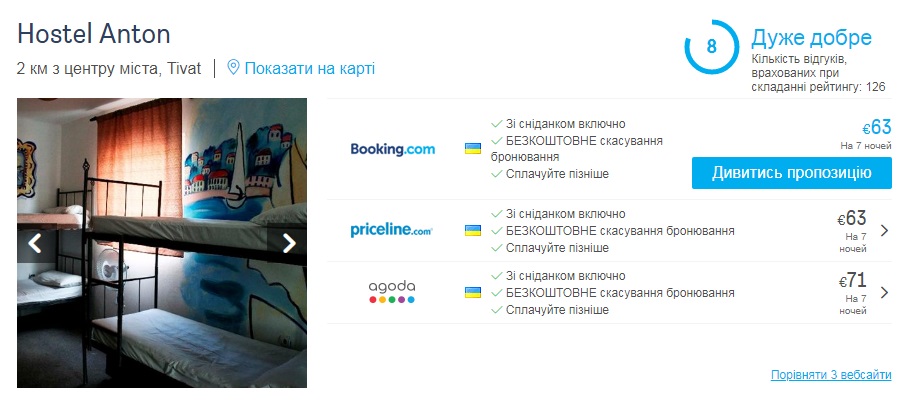 - Hotelscombined.сom — порівняння цін на готелі, знижки до 50%