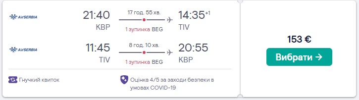 Київ – Тиват – Київ (12.08.2021 – 19.08.2021) – €153