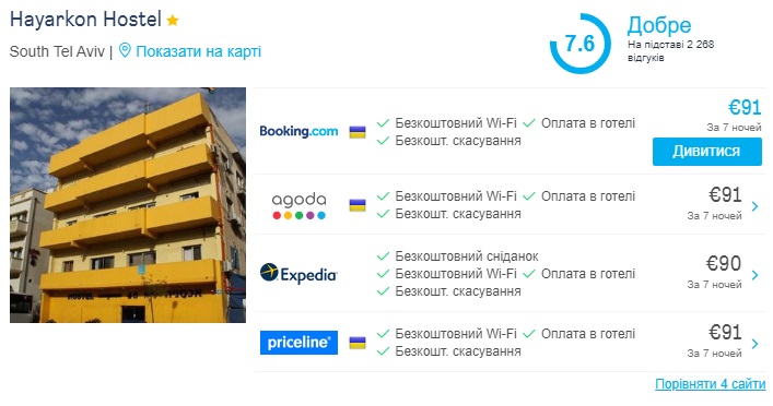 Щоб не переплачувати комісій радимо порівнювати ціни на Hotelscombined.сom.