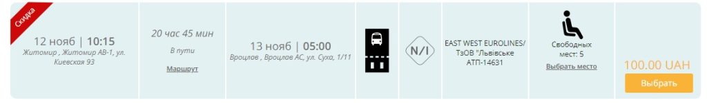 Житомир-Вроцлав (13.11.2019) – ₴100