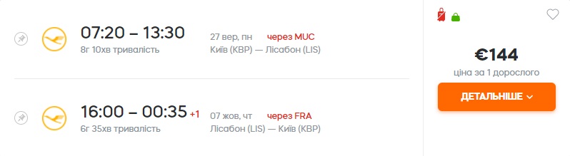 Київ – Лісабон – Київ (27.09.2021 – 07.10.2021) – €144