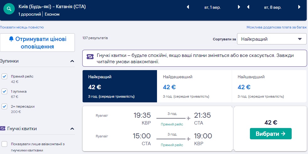 Київ-Катанія-Київ (01.09.2020 – 08.09.2020) – €42