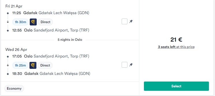 Гданськ – Осло – Гданськ (21.04.2023 – 26.04.2023) – €21