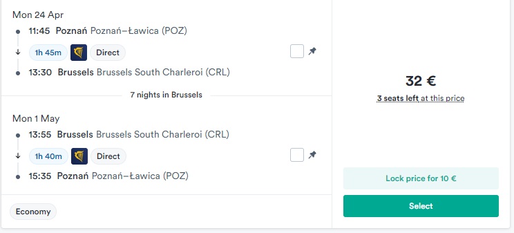 Познань – Брюссель – Познань (24.04.2023 – 01.05.2023) – €32