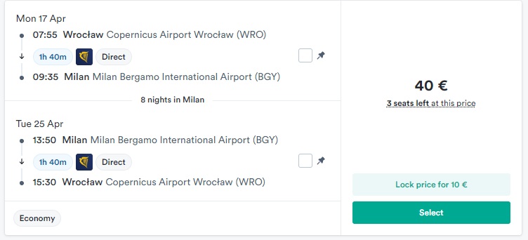 Вроцлав – Мілан (17.04.2023 – 25.04.2023) – €40