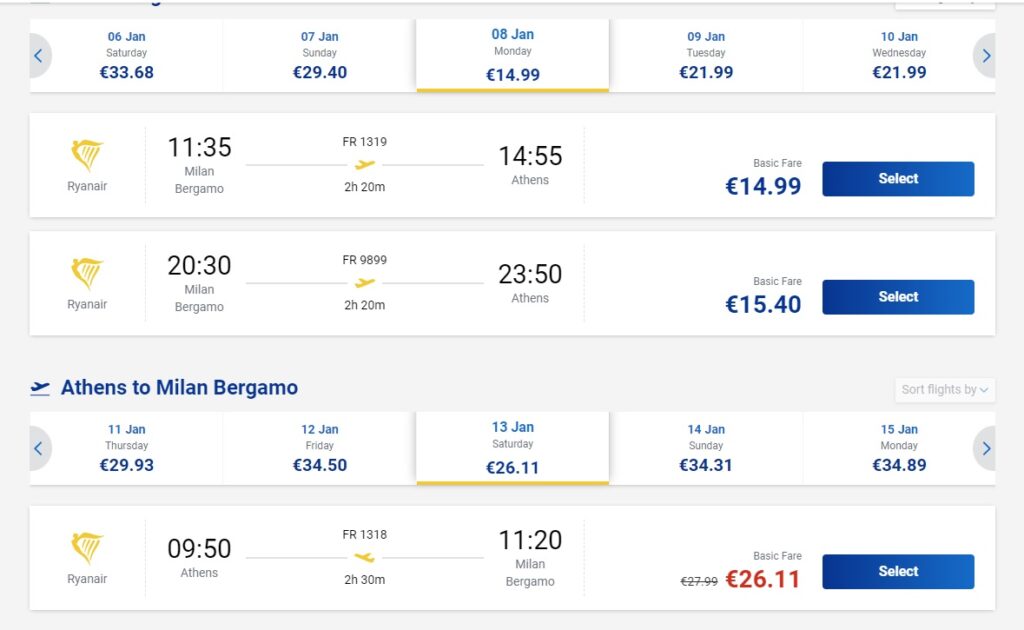 Мілан – Афіни – Мілан (08.01.2024 – 13.01.2024) – €41