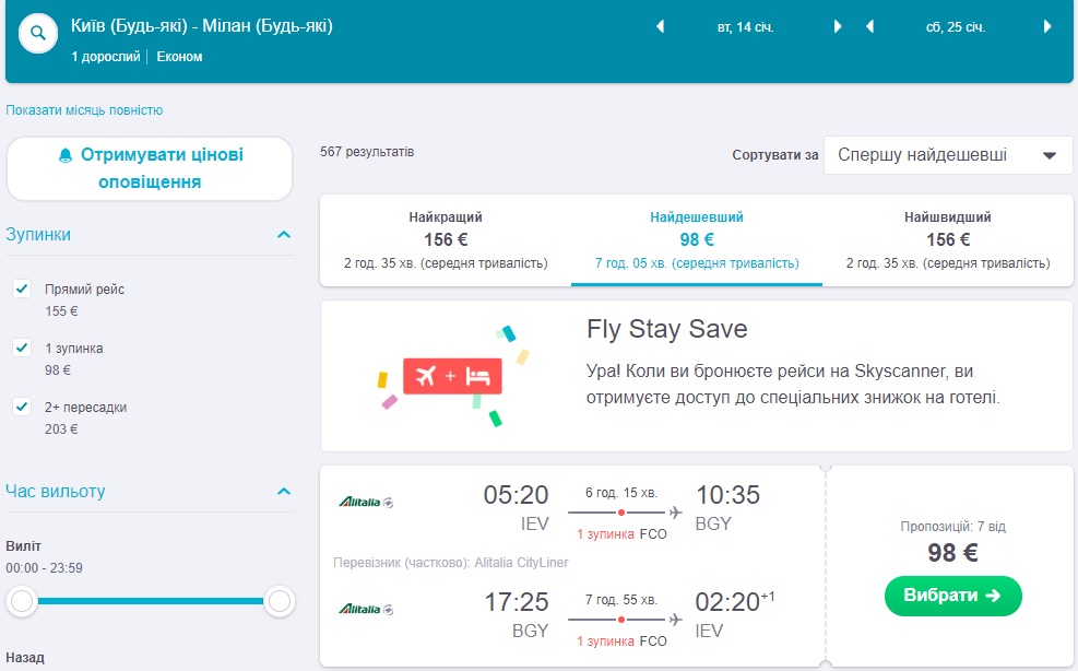 Київ-Мілан-Київ (14.01.2020 – 25.01.2020) – €98