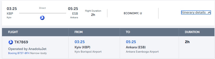 Загальна вартість перельотів Київ – Анкара – від €58.