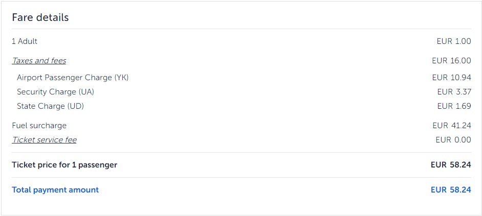 Водночас з пасажирів стягуються аеропортові збори та плата за паливо. Проте в тарифах включено зареєстрований багаж до 20 кг.