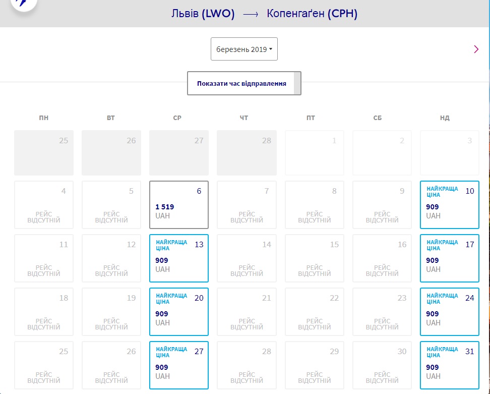 Рейс буде здійснювати два рази на тиждень – по середах та неділях. Виліт зі Львова о 19:45, з Копенгагена о 16:50.