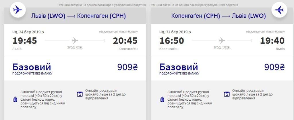 Вартість квитків від €30 в одну сторону та €19 для учасників Wizz Discount Club.