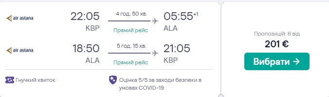 Київ – Алмати – Київ (01.05.2021 – 08.05.2021) – €201