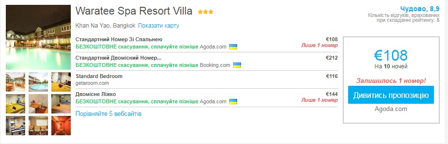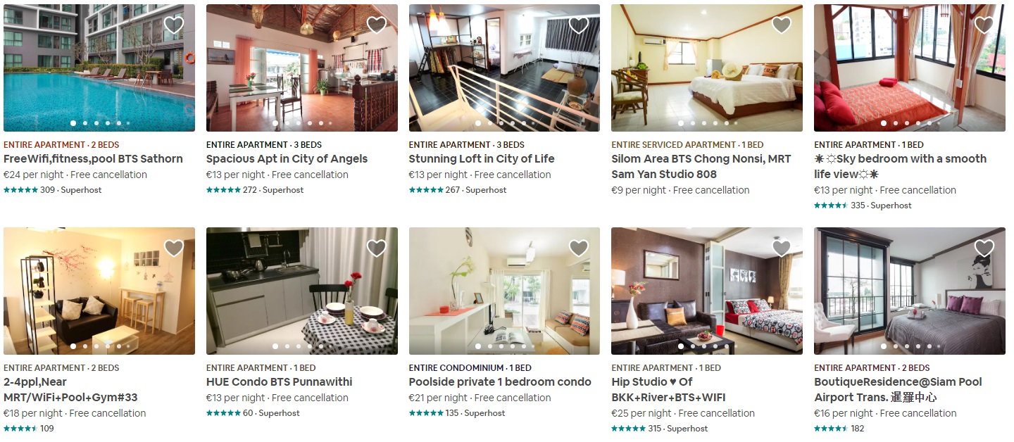 Приклади бронювання житла у Бангкоку на період 06.06.2019 — 16.06.2019 , 10 ночей :