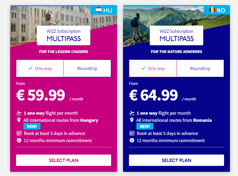 Щоб придбати Multipass, потрібно обрати країну, переліт в одну чи обидві сторони, а також вказати, чи потрібен зареєстрований багаж. Щомісячна плата для вильотів з Угорщини – €60, а з Румунії – €65.