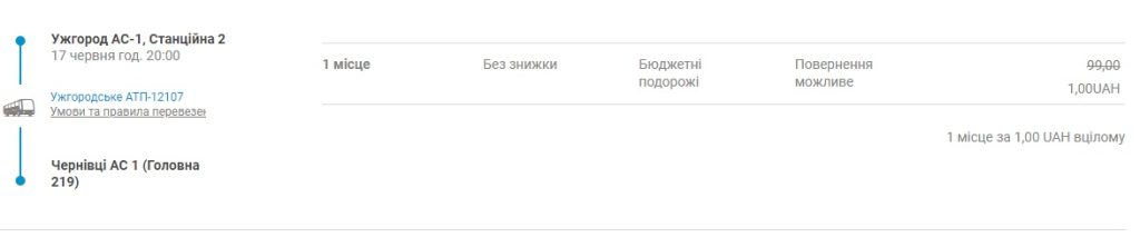 Ужгород-Чернівці (17.06.2019) – 1 грн.