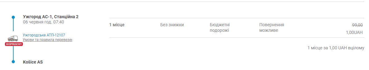 Ужгород-Чернівці (17.06.2019) – 1 грн.