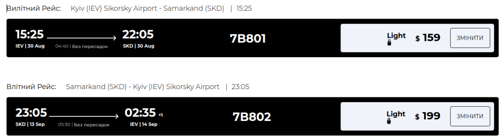 Українська авіакомпанія Bees Airlines запустить перельоти з Києва у Самарканд. Рейси планують виконувати щопонеділка на сучасних Boeing 737-800. Виліт із Києва о 15:35. Приліт до Самарканду о 22:05. Виліт із Самарканду о 23:05. Приліт до Києва о 02:35 наступного дня.