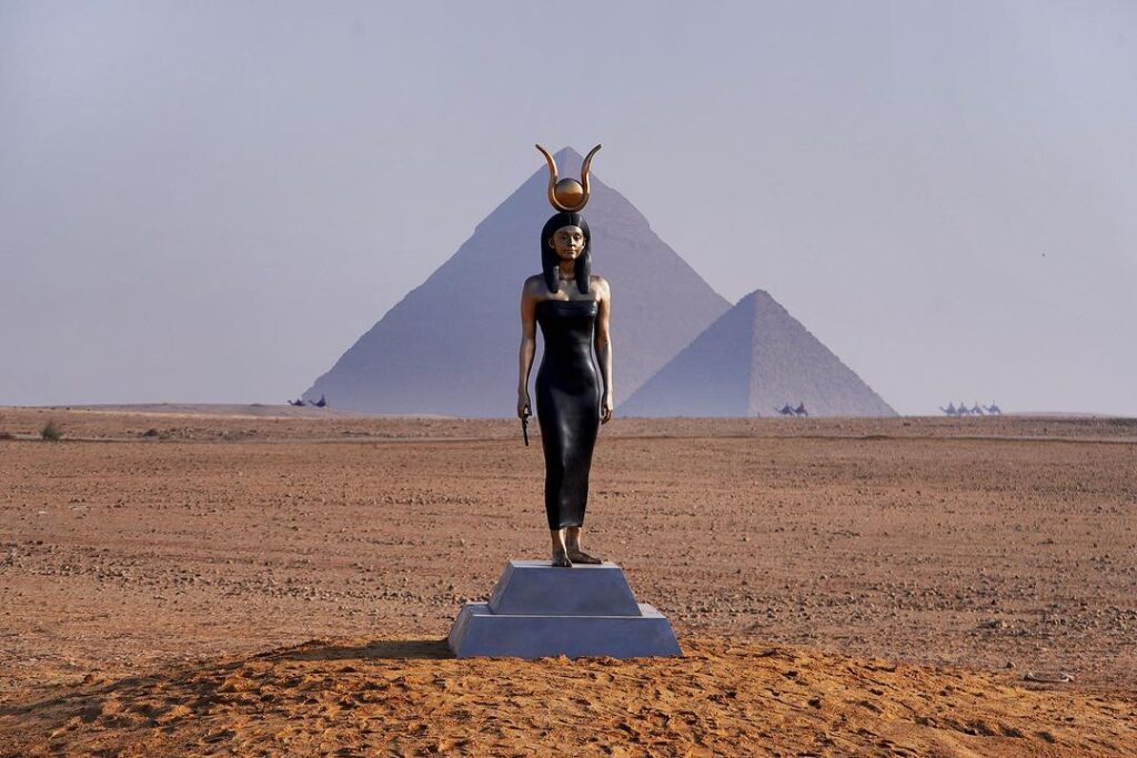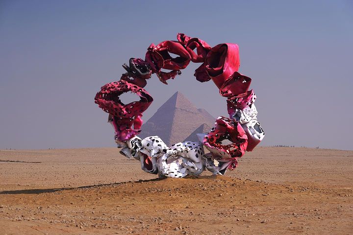 Серед робіт, які представлені на виставці – скульптура бельгійського митця Арне Квінза, що пропонує унікальну точку огляду з видом на піраміди, неймовірна скульптура давньоєгипетської богині Хатор Керола Фейермана, фрагменти лабіринту Рашида Аль Халіфи, вапняковий портал Пілар Зети та багато інших.
