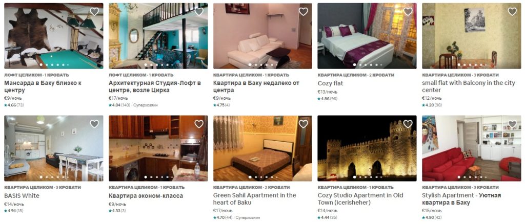 Приклади бронювання житла у Баку на період 14.02.2020 – 21.02.2020, 7 ночей: