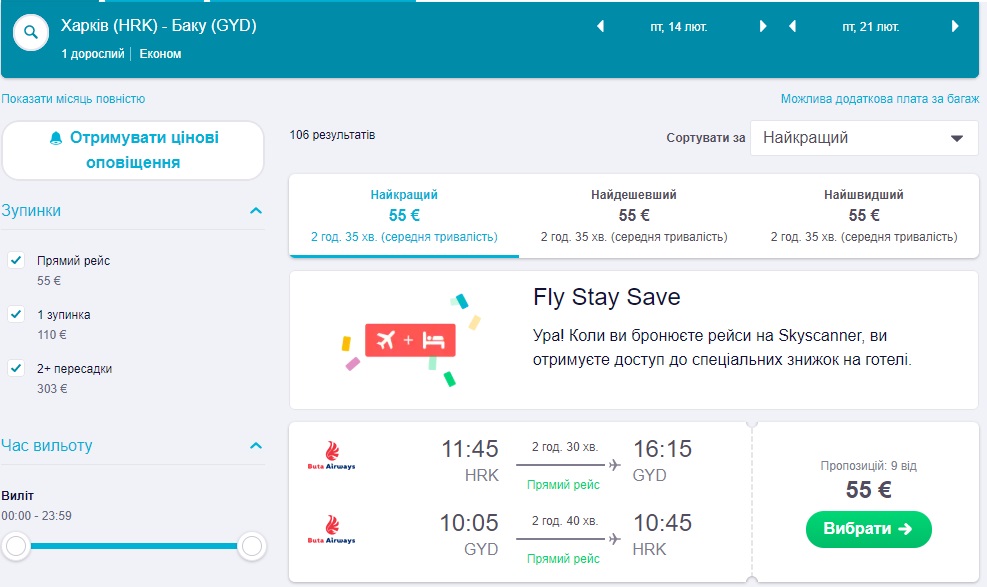 В азербайджанського лоукоста Buta Airways залишились хороші варіанти для подорожей з Харкова у Баку на період зимової навігації.