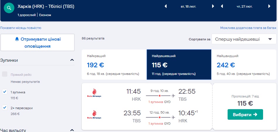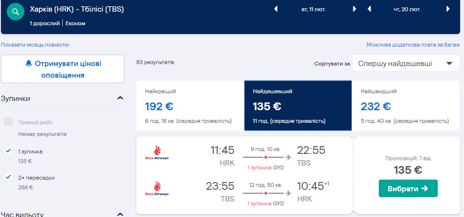 У лоукоста Buta Airways зявились хороші варіанти для перельоту з Харкова у Тбілісі на зиму 2020.