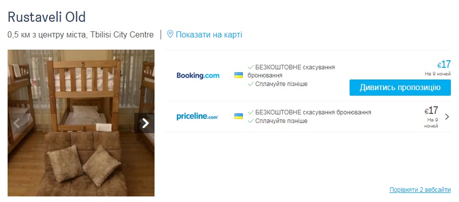 Для бюджетного проживання – Rustaveli Old – від €17 за місце у хостелі.
