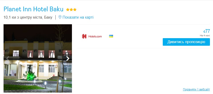 Для комфортнішого проживання – Planet Inn Hotel Baku – від €77 за двомісний номер.