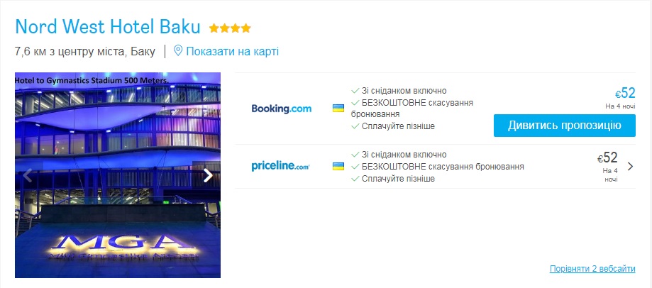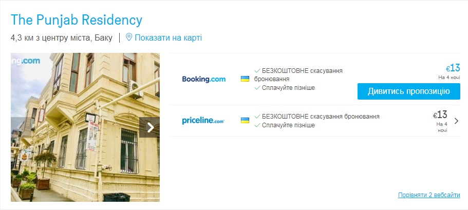 Щоб не переплачувати комісій радимо порівнювати ціни на Hotelscombined.сom.