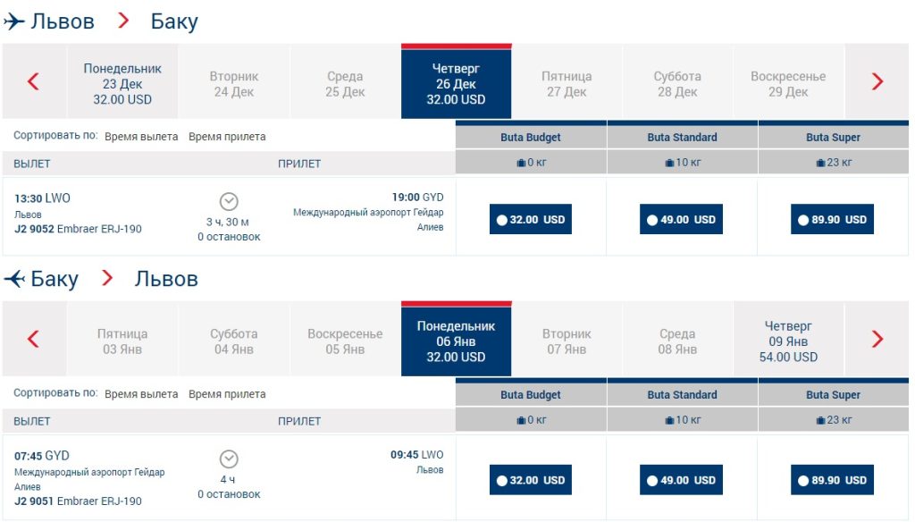Нові прямі рейси зі Львова у Баку розпочнуть здійснювати з 23 грудня 2019 року, двічі на тиждень – по понеділках та четвергах.