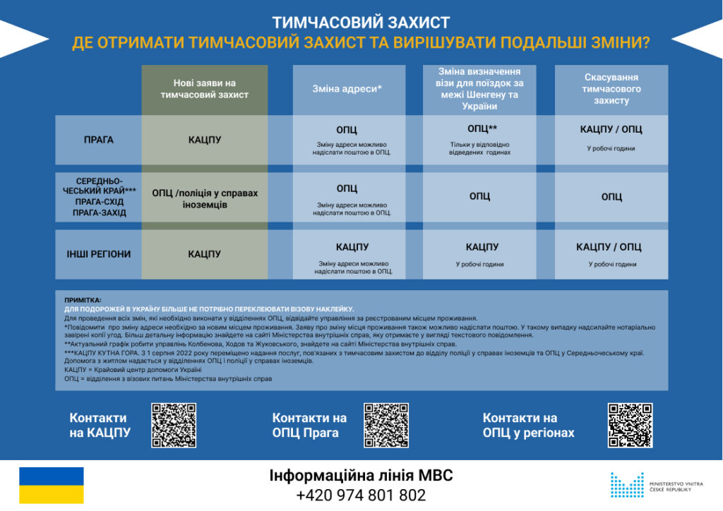 На думку МВС, стан війни в Україні не свідчить про те, що біженці зможуть повернутись додому найближчим часом. Статус тимчасового захисту дозволяє українцям користуватись чеською системою охорони здоров’я та освіти, а також надає вільний доступ до ринку праці. У разі потреби допомагають з пошуком житла, роботи, школи для дітей тощо.