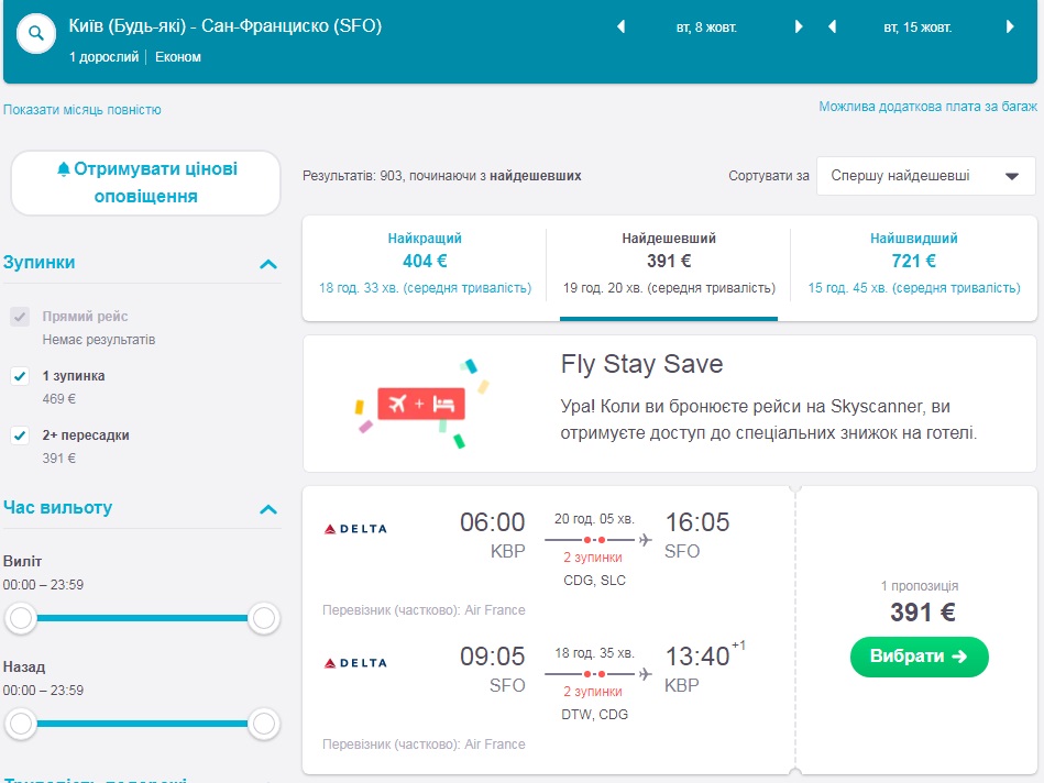 Skyscanner.com — пошук та відслідковування цін на авіа