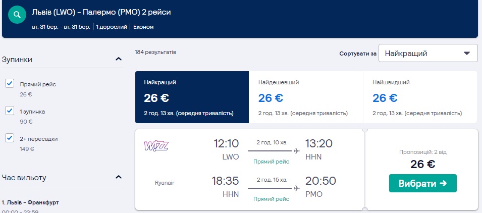 Загальна ціна авіарейсів зі Львова у Палермо – від €92 туди-назад.