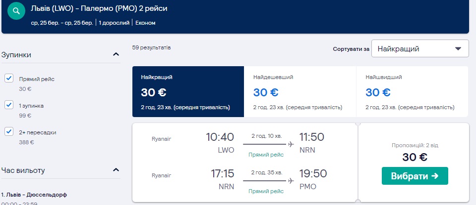 Львів-Дюссельдорф-Палермо (25.03.2020) – €30