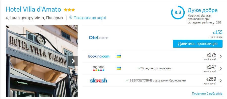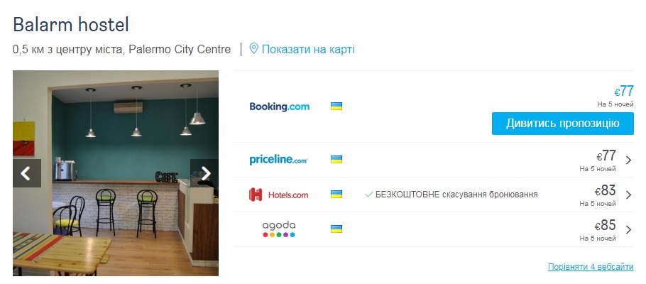 - Hotelscombined.сom — порівняння цін на готелі, знижки до 50%