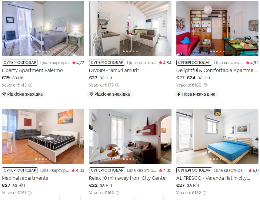 Приклади бронювання житла у Палермо на період 31.03.2020 — 05.03.2020, 5 ночей: