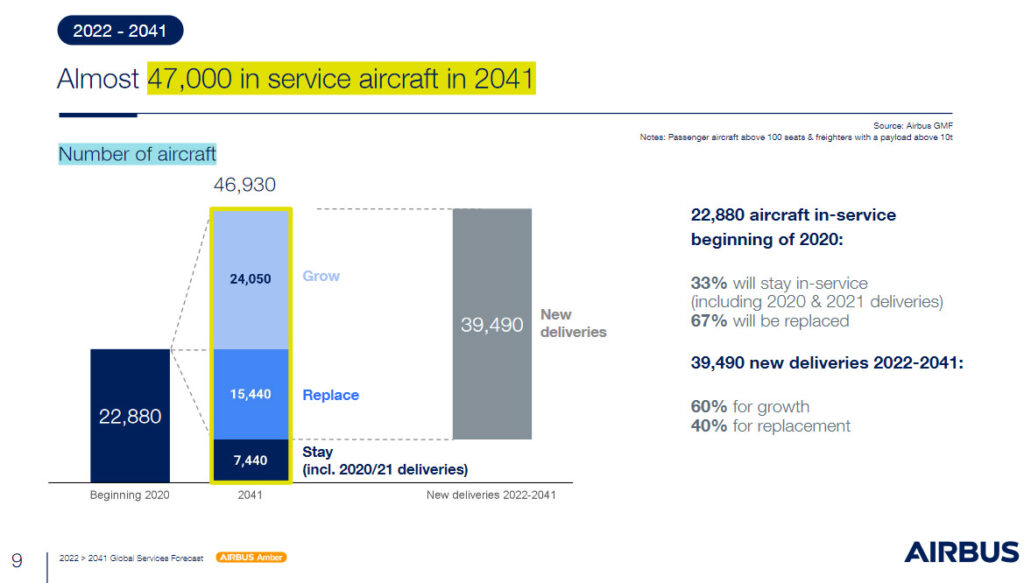 Про це йдеться в прогнозі Airbus Global Services Forecast 2022-2041, пише Avianews.