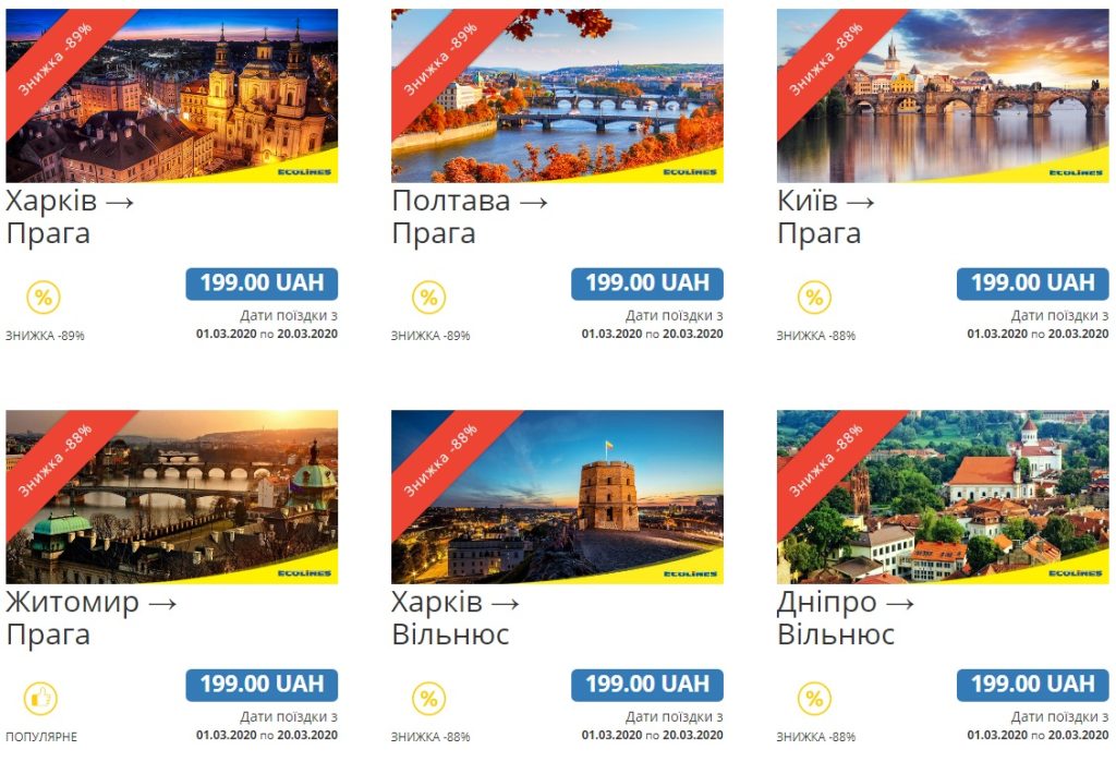 Автобусний перевізник Ecolines продовжив розпродаж квитків з України до Польщі, Чехії та Литви – від ₴199 в одну сторону.