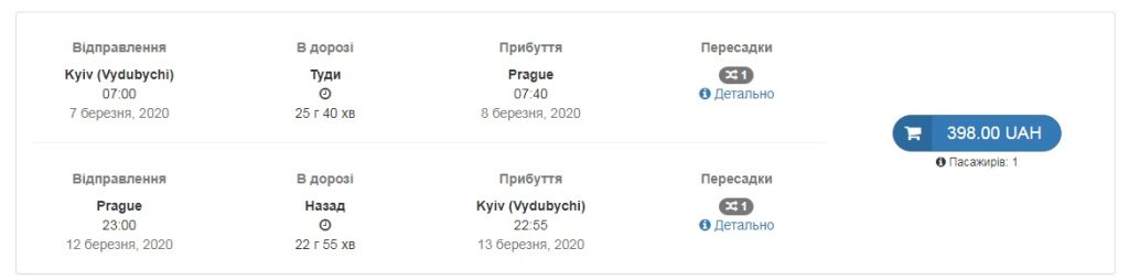 Київ-Прага-Київ (07.03.2020 – 12.03.2020) – ₴398