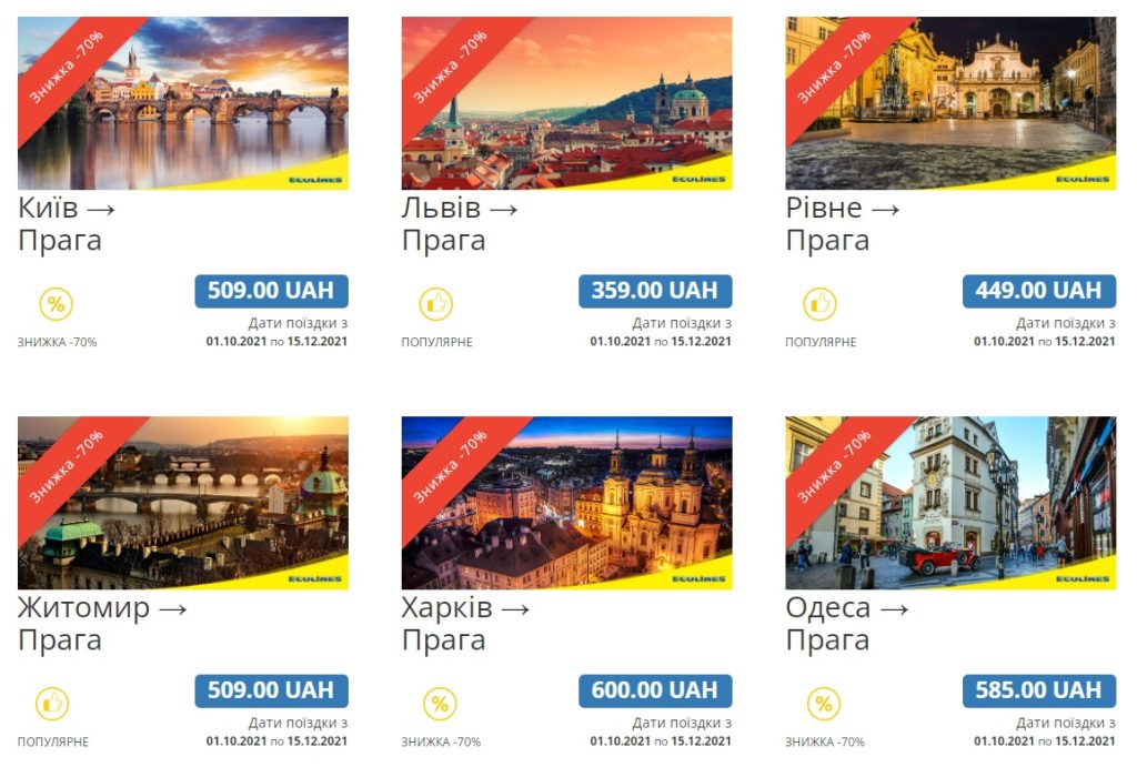 Автобусні рейси з міст України до Праги – від €12 в один бік.