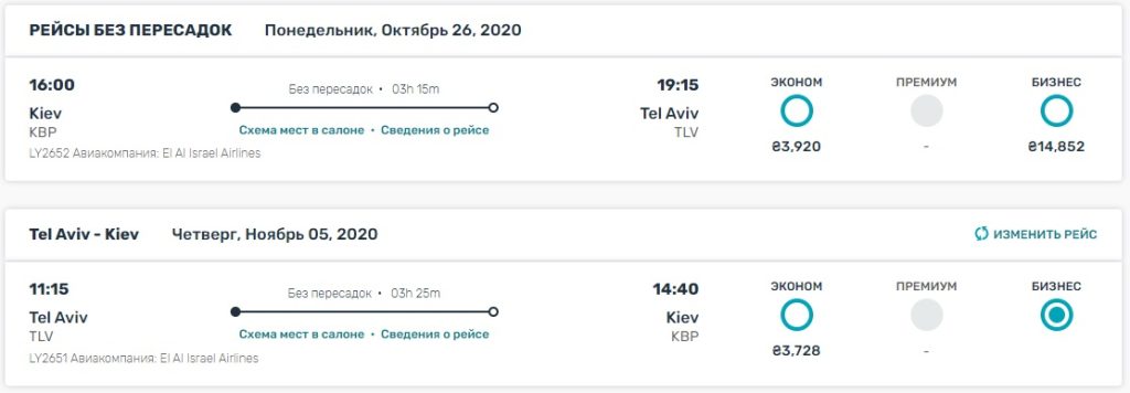 Літати з Києва будуть о о 16:00 з прибуттям в Тель-Авів о 19:15. Час в дорозі складе 3 години 15 хвилин. З Тель-Авіва літак El Al буде вилітати о 11:15 і прилітати до Києва о 14:40
